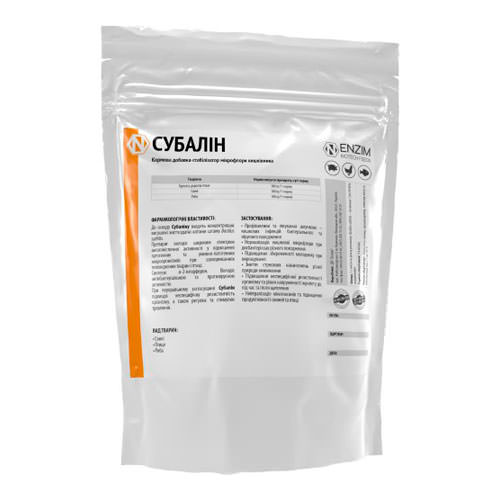 | Субалін 1 кг | 1 кг | Порошок | Корисні бактерії | 10гр/1 кг корму | Пробіотик | З кормом та водою |
